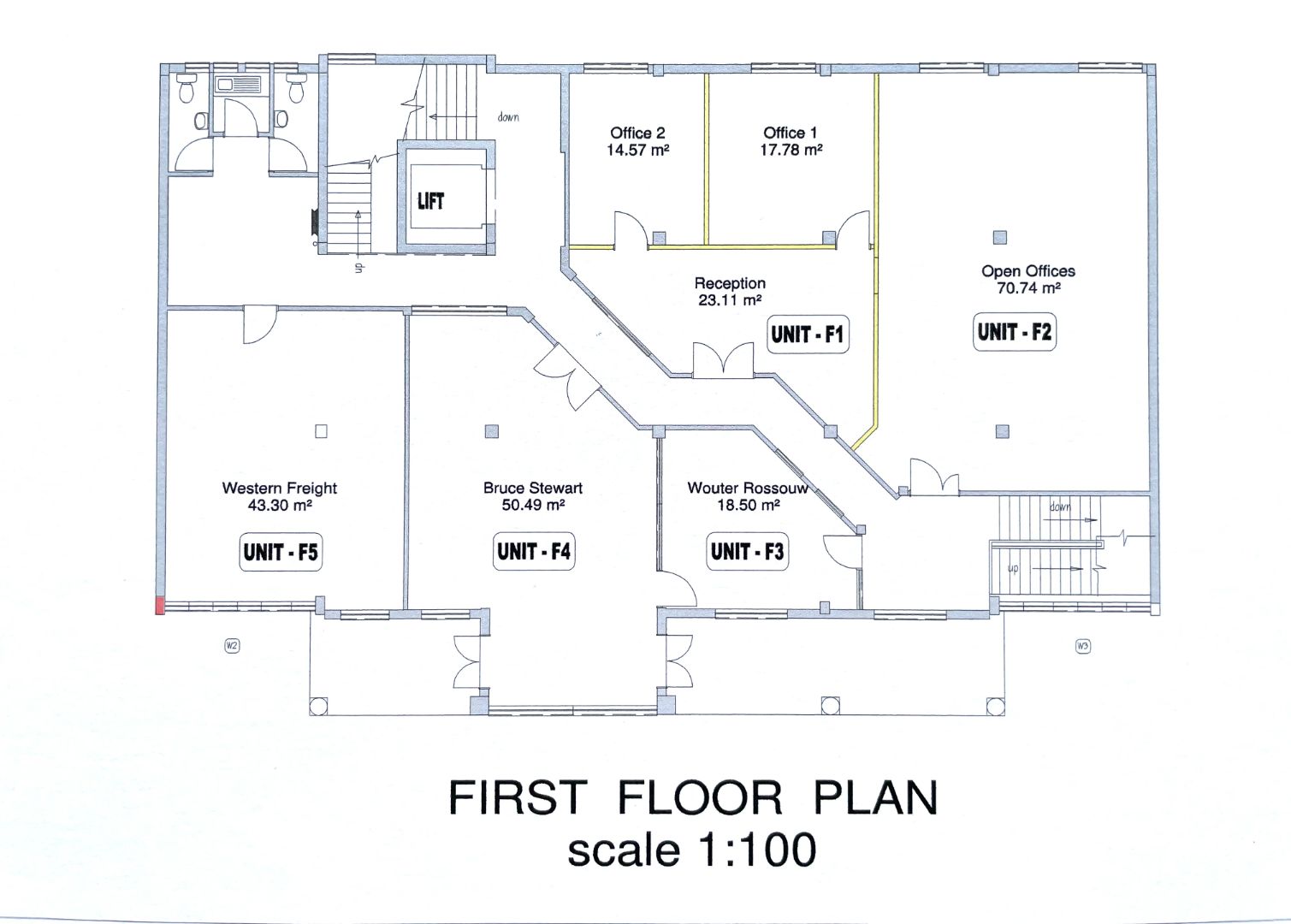 The lower level comprises of two office units each with reception area, open-plan office, hallway, office, kitchenette and toilet.